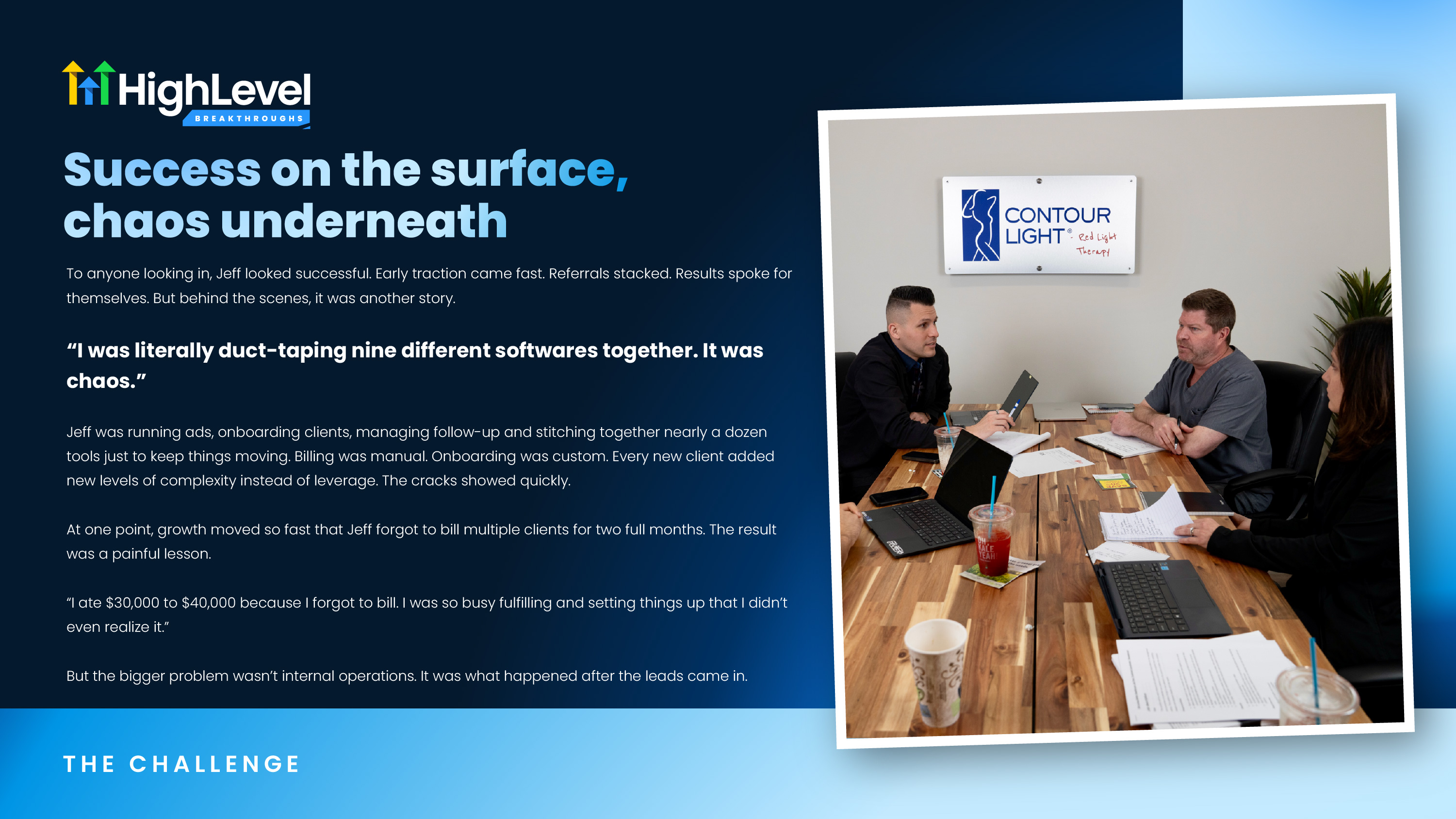 “I was duct-taping nine different softwares together just to get results for one client,” Jeff says. “It worked… but barely.”